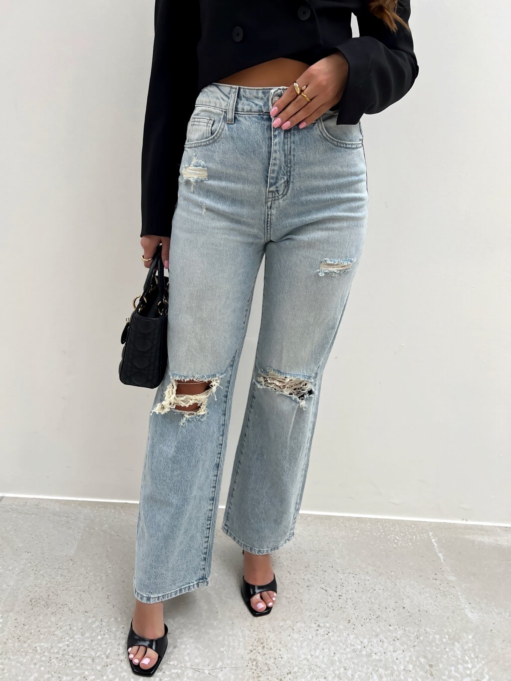 Modré potrhané širší džíny TOVE