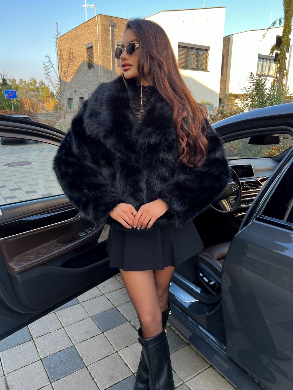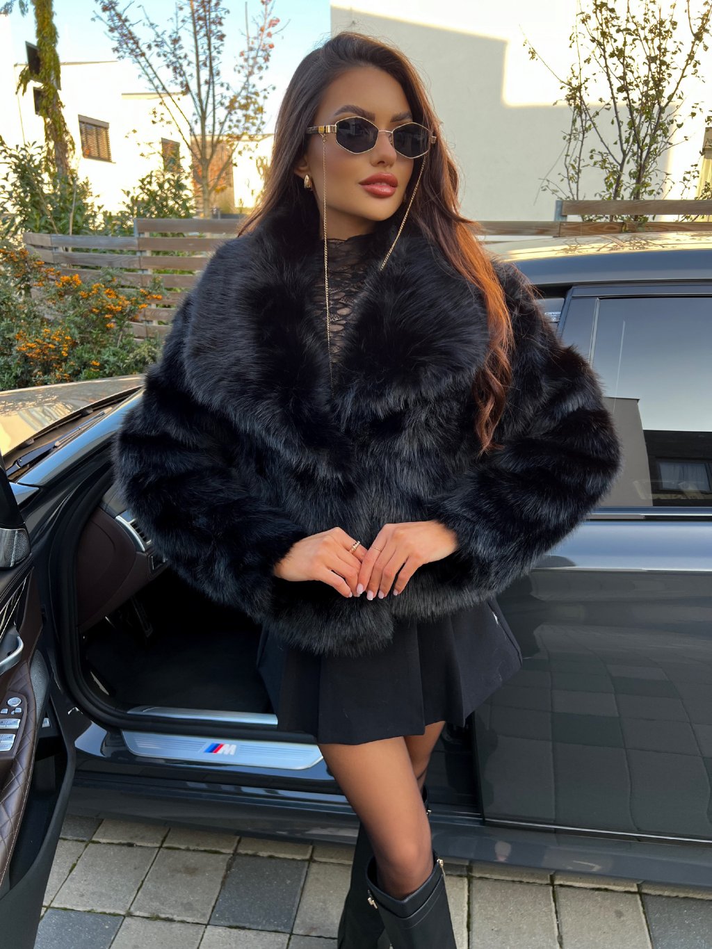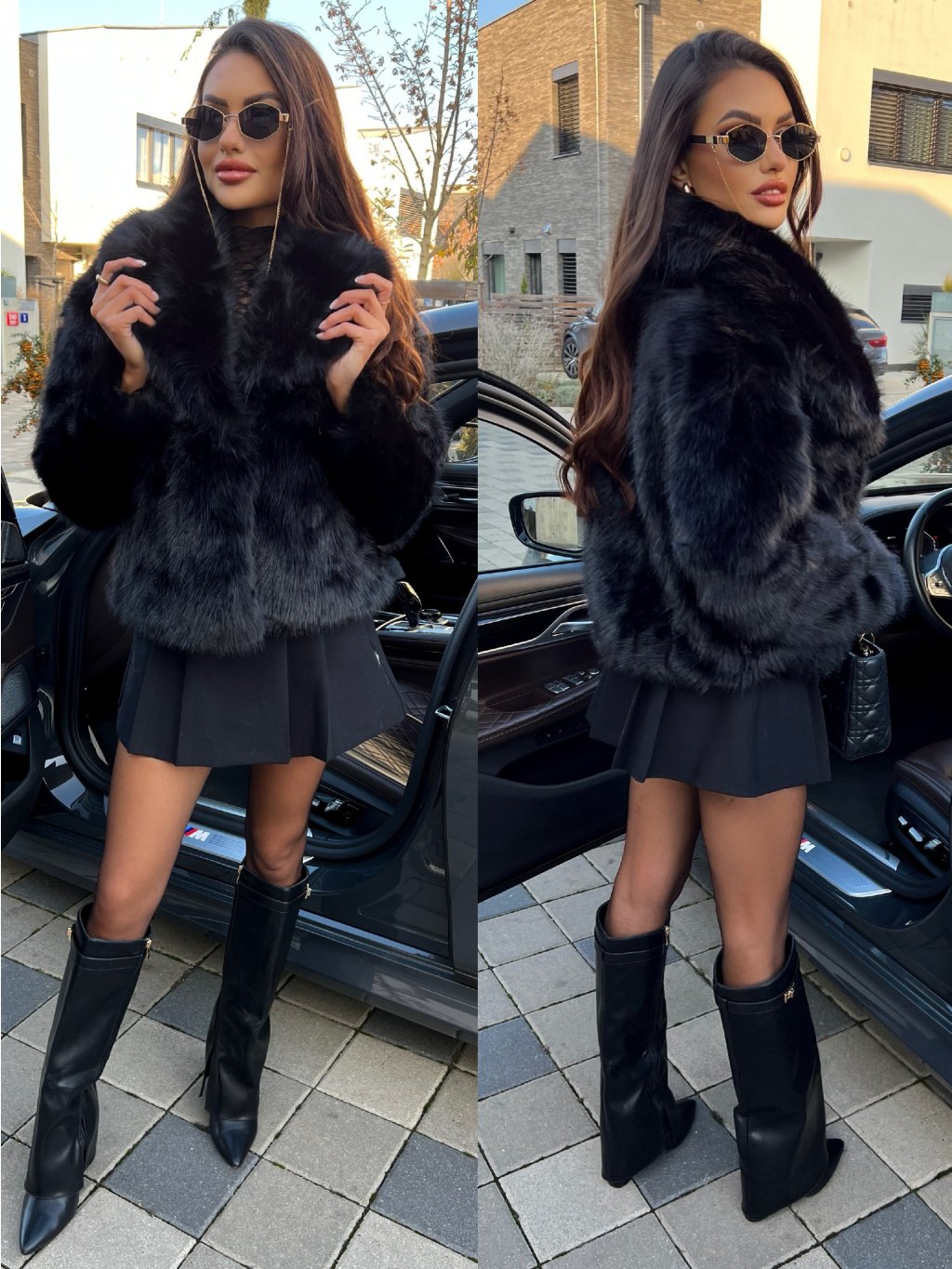 Luxusní populární kožich s bohatým chlupem. Kožich je vhodný i do zimy, velmi hřejivý materiál. Bohatý límec. Zapínání na pevný patent, díky kterému udrží hřejivý efekt. Pro stylovější vzhled vybírejte o číslo větší velikost. Hluboké kapsy po bočních stranách. Saténová černá podšívka. Modelka nosí na fotce kozačky HERMINE z naší nabídky. Modelka měří 170 cm a na fotce obléká velikost S/M.