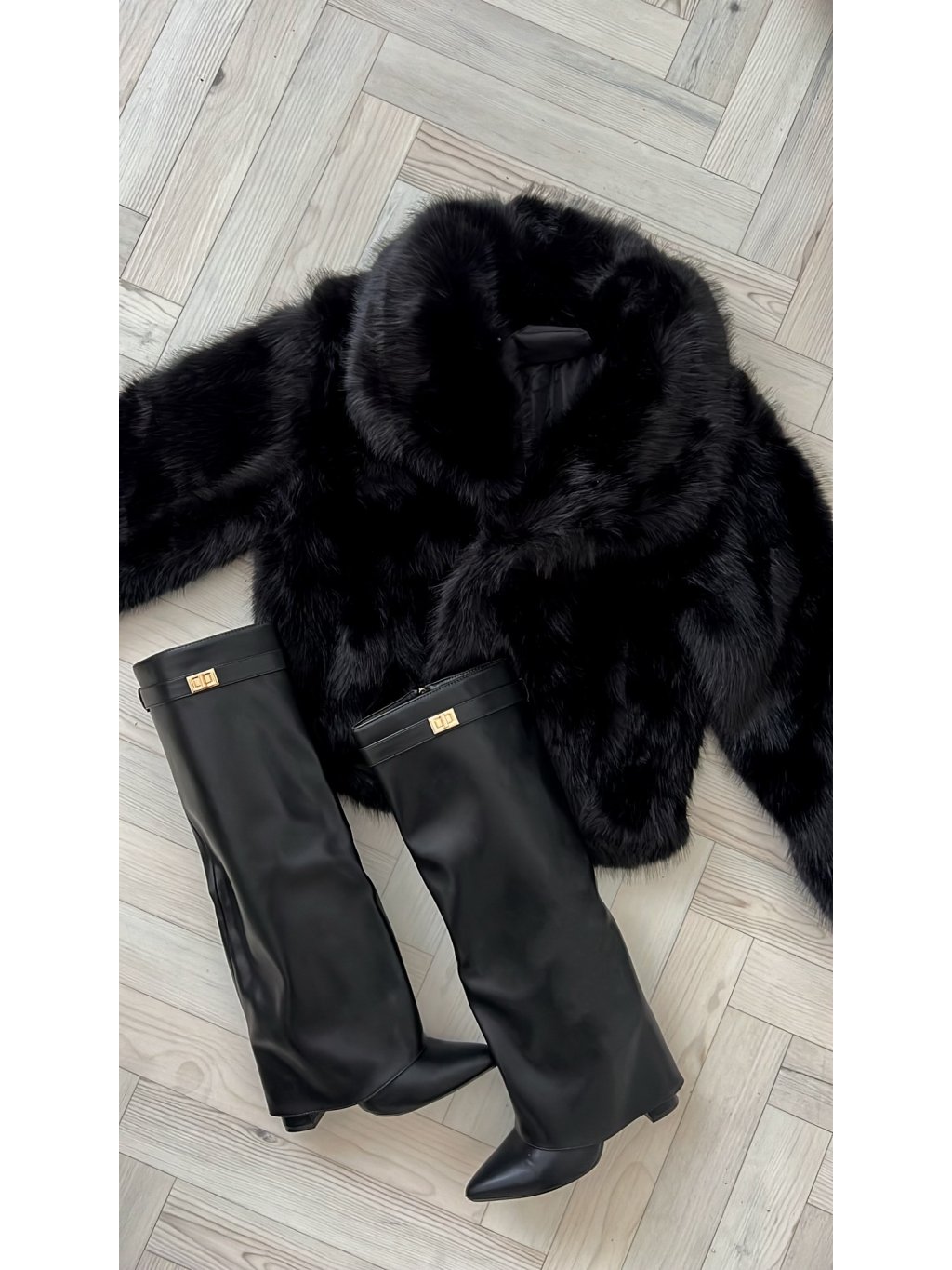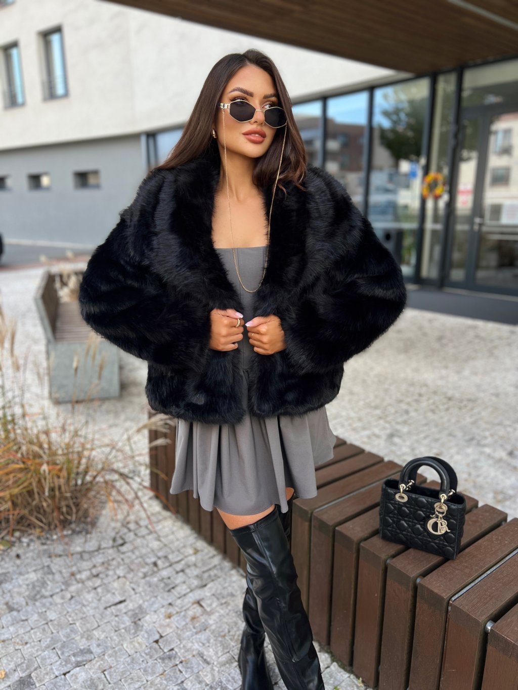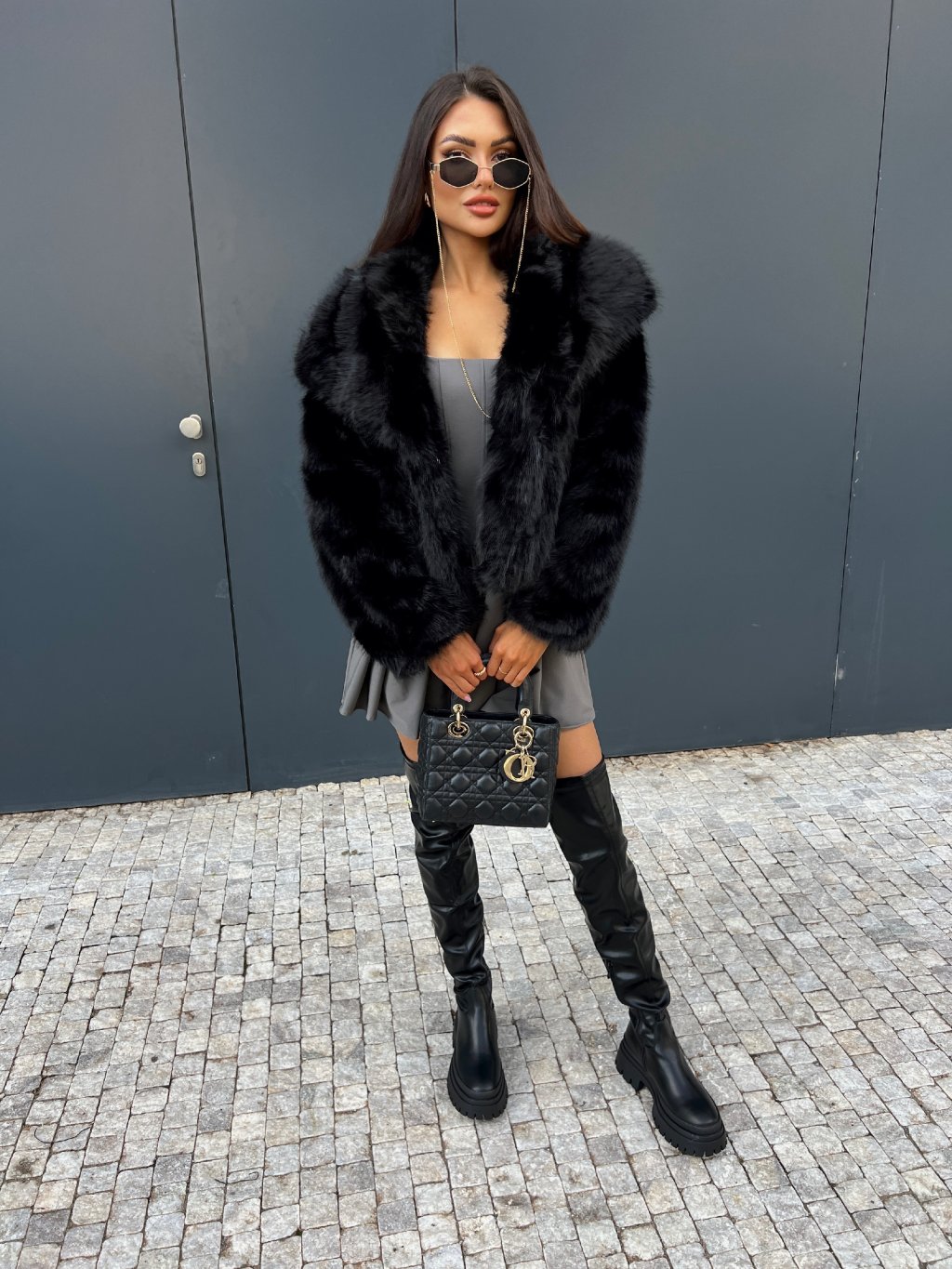 Luxusní populární kožich s bohatým chlupem. Kožich je vhodný i do zimy, velmi hřejivý materiál. Bohatý límec. Zapínání na pevný patent, díky kterému udrží hřejivý efekt. Pro stylovější vzhled vybírejte o číslo větší velikost. Hluboké kapsy po bočních stranách. Saténová černá podšívka. Modelka nosí na fotce kozačky HERMINE z naší nabídky. Modelka měří 170 cm a na fotce obléká velikost S/M.
