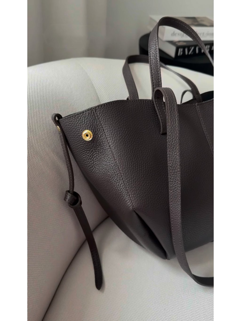 PREMIUM. Vyrobeno v Itálii. Luxusní kabelka z pravé hladké kůže v populárním čokoládovém odstínu. Zlaté detaily - patenty a zip na horní straně. Zapínání na horní zlatý zip. Propracované detaily a pevný tvar. Kabelku lze nosit i přes rameno s delším popruhem. Pevně drží svůj tvar i dno. Největší velikost kabelky, do které se vejde opravdu vše nezbytné - notebook, kosmetická taška, atd. Součástí kabelky je uvnitř i kosmetická černá vyjímatelná taška na zip. Kabelku lze stáhnout bočními patenty na menší velikost.