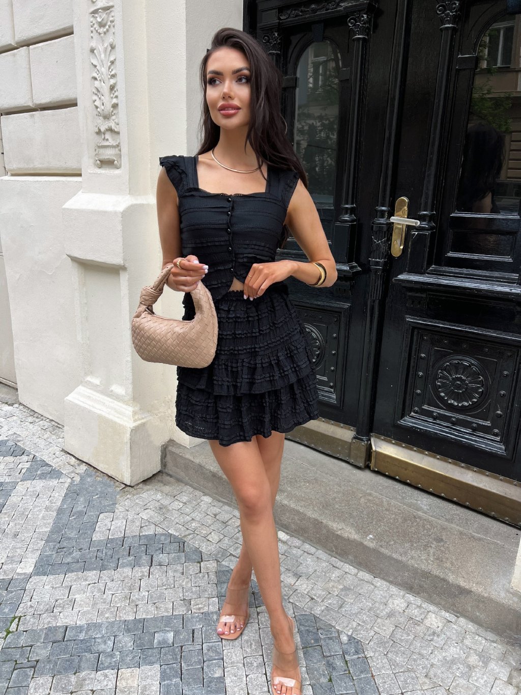 Elegantní komplet topu a sukně vyrobený z bavlny. Kvalitní zpracování. Top má zapínání na perly. Sukně má všité vnitřní šortky a je tak velmi pohodlná na nošení. Komplet lze využít i zvlášť. Modelka měří 170 cm a běžně nosí velikost S, obléká velikost S/M na fotce. vybírejte svou běžnou velikost.
