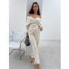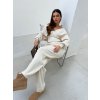 Kvalitní naprosto stylový komplet svetr a širokých kalhot. Materiál je na pokožku velmi hladký a opravdu příjemný. Svetr i kalhoty lze využít i odděleně. Ramena drží bez sjíždění na pokožce. Lze nosit se spadlými rameny či klasicky. Kalhoty mají funkční hluboké kapsy. Svetr lze nosit s podprsenkou. Modelka měří 170 cm a běžně nosí velikost S.