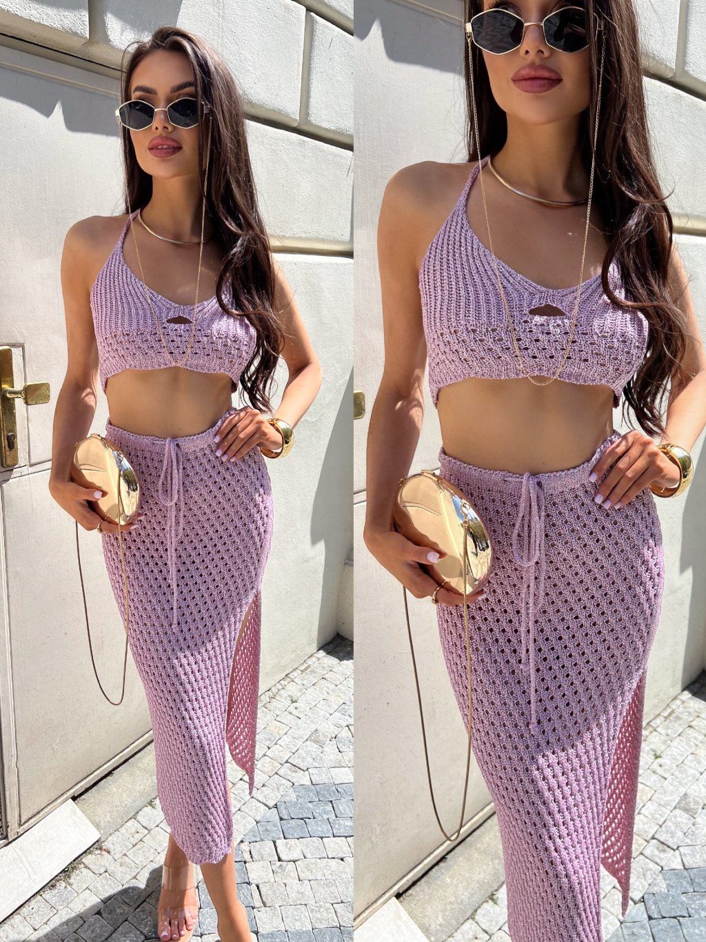 Vyrobeno v Itálii. Luxusní plážový set sukně a topu, ve kterém zazáříte. Vhodný na pláž v kombinaci s plavkami. Třpytivý efekt. Materiál je elastický. Velikost je vhodná na S, M, L. Modelka měří 170 cm a běžně nosí velikost S.