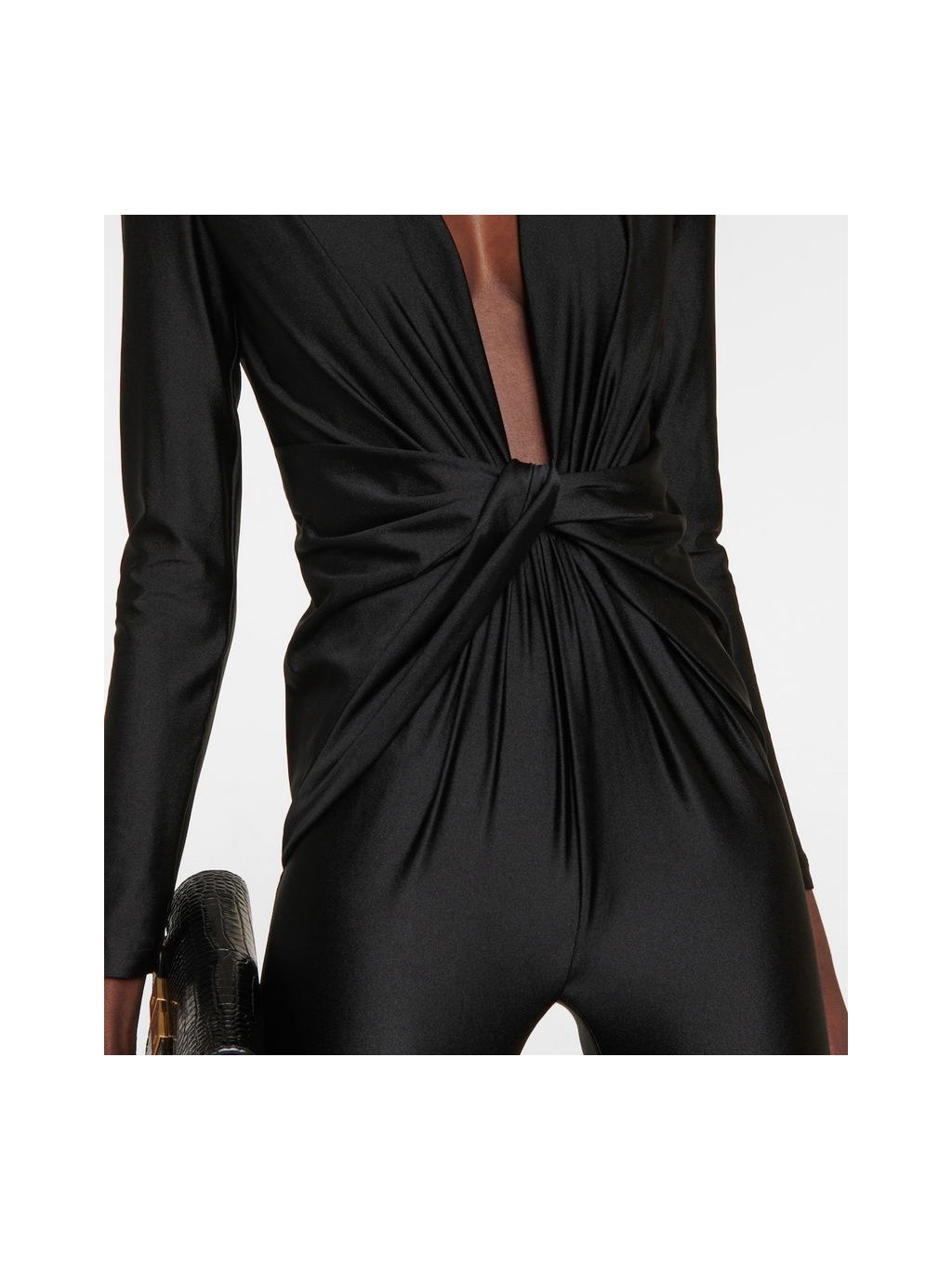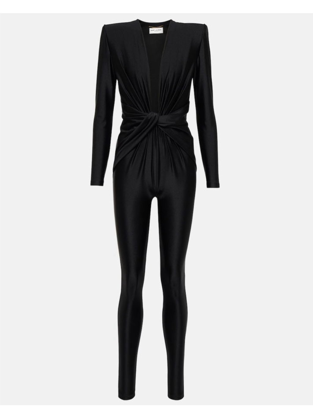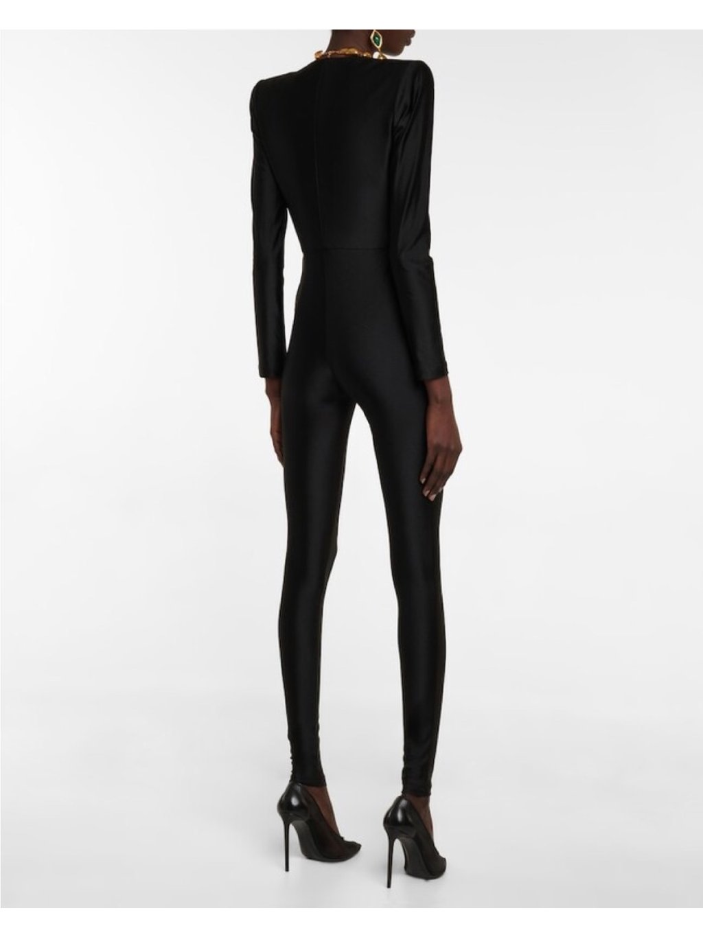 Vyrobeno v Itálii. K odeslání 19.2. Sexy elastický černý overal s jemným leskem. Bohaté ramenní vycpávky, které vytvoří elegantní dojem. Otevřená oblast dekoltu. Pohodlný na nošení. Vhodné i na větší poprsí - látka lze nastavit tak, aby nesjížděla. Velikost sedí na XS, S, M. Modelka běžně nosí velikost S a měří 170 cm.