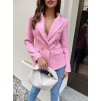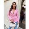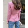 Vyrobeno v Itálii. Vypasované tvídové luxusní sako. S třpytivou přízí. Zlaté krásné knoflíky na obou rukávech. Uvnitř saténová jemně růžová podšívka. Klopový pevný límec a dvouřadé zapínání. Patkové kapsy. Sako drží pevně svůj tvar. Vypadá stylově i rozepnuté. Modelka běžně nosí velikost S a měří 170 cm, obléká velikost saka S.