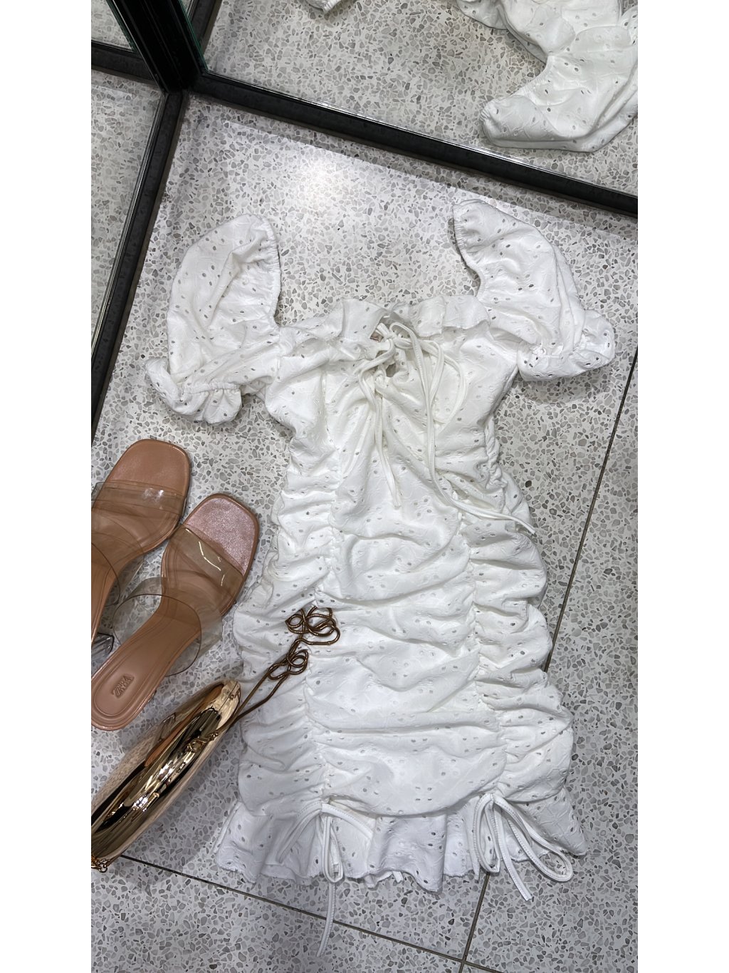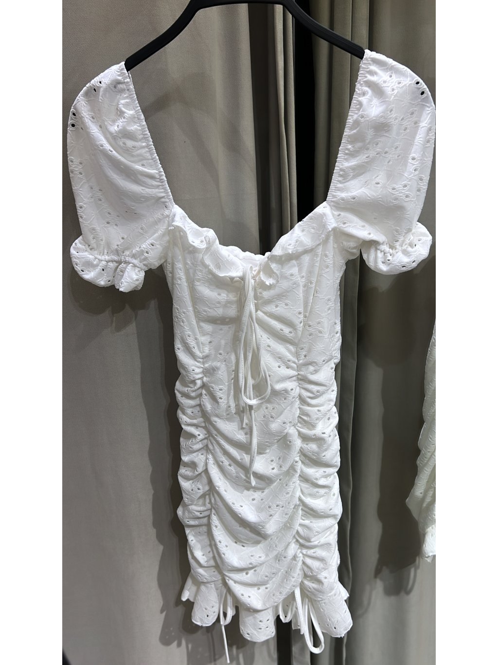 Vyrobeno v Itálii. Bílékrásné boho šaty s krajkou a uzlíky na zavazování ve spodní části. Šaty mají vnitřní bílou podšívku - neprosvítají. Kvalitní detaily a zpracování. Modelka měří 170 cm a běžně nosí velikost S.