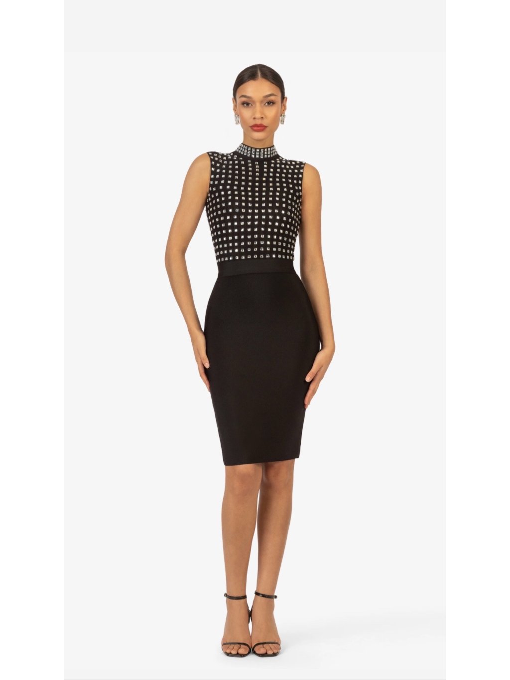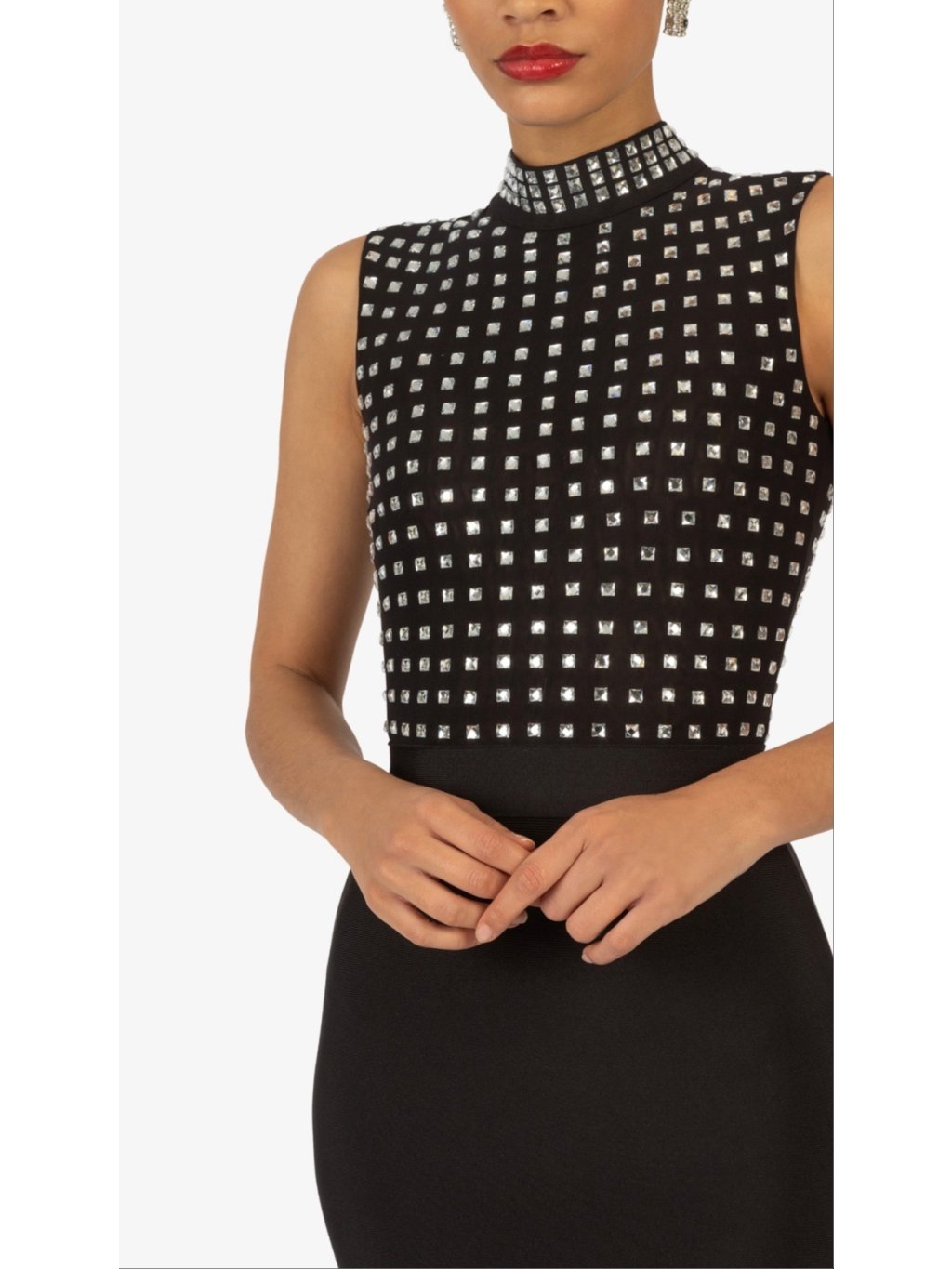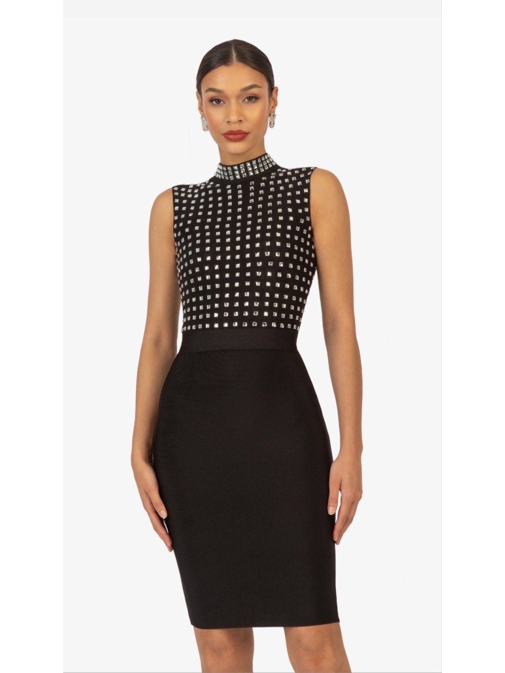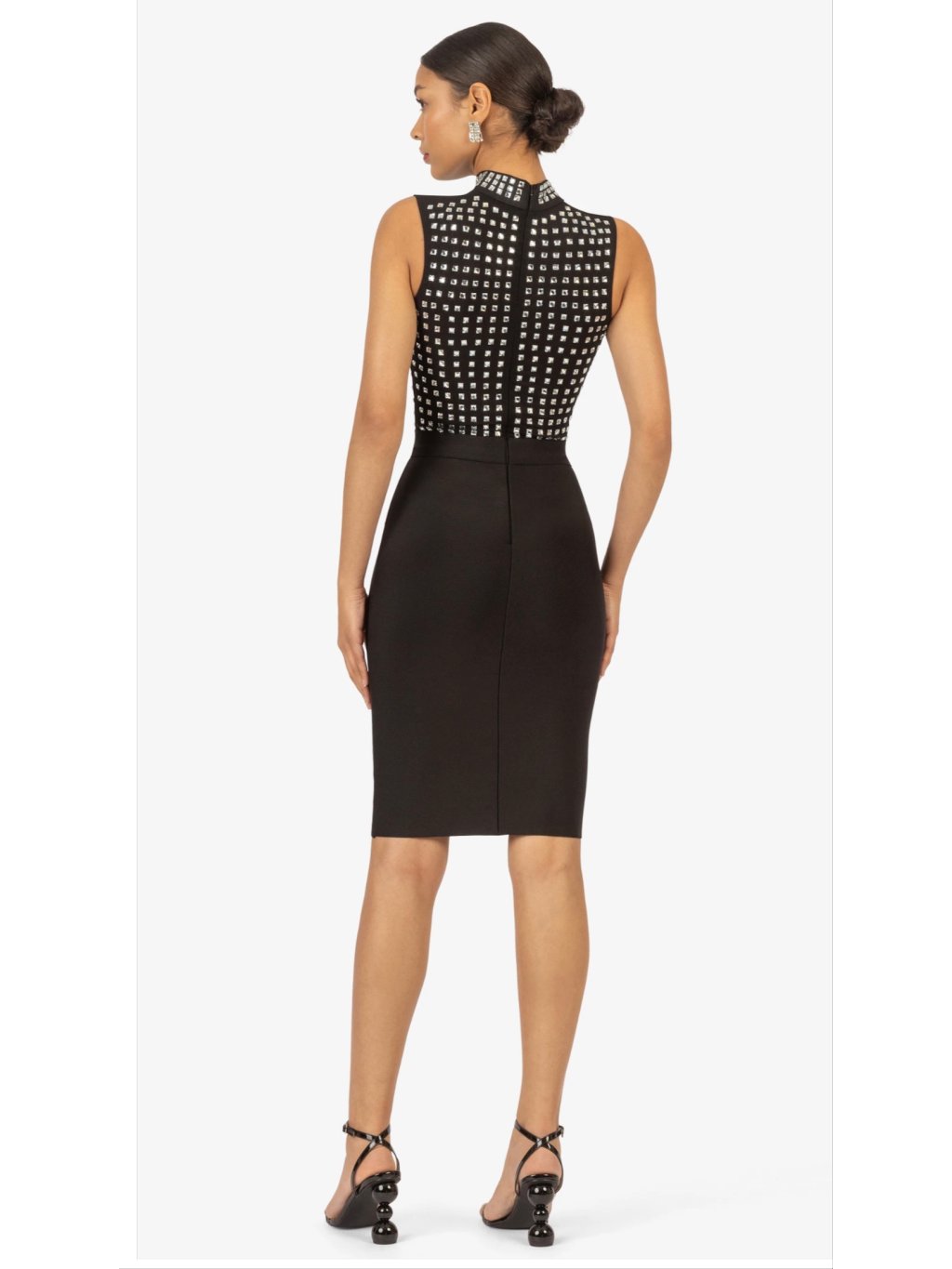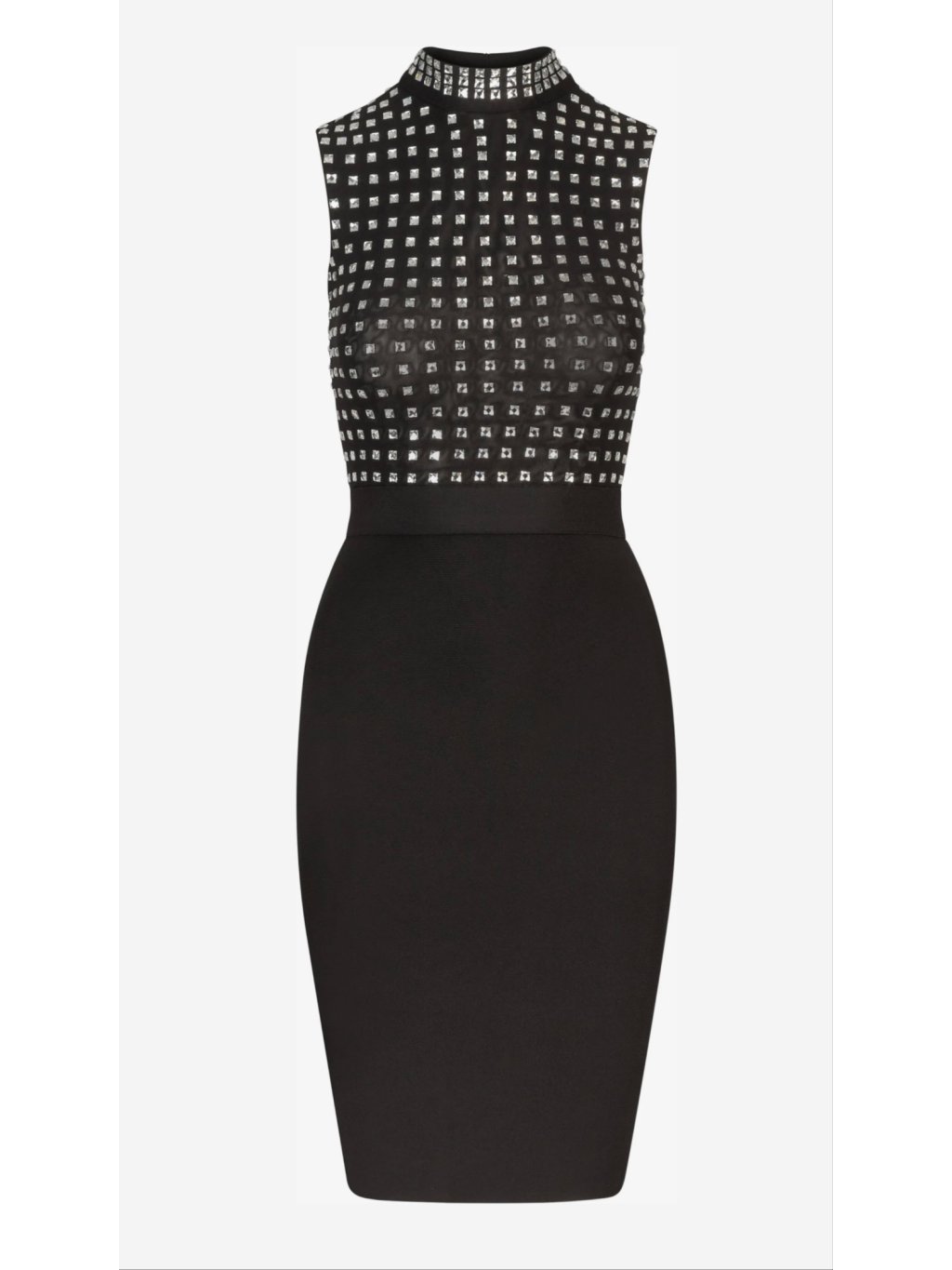 Francouzská premium značka. Luxusní černé koktejlové šaty se stříbrnými kamínky. Šaty mají bandážovou část sukně, která je složena z pevnějšího a elastického materiálu. Působí luxusním dojmem. Zapínají se na zadní straně na delší černý jemný zip - snadné oblékání. Vybírejte svou běžnou velikost, modelka na fotce obléká velikost S.