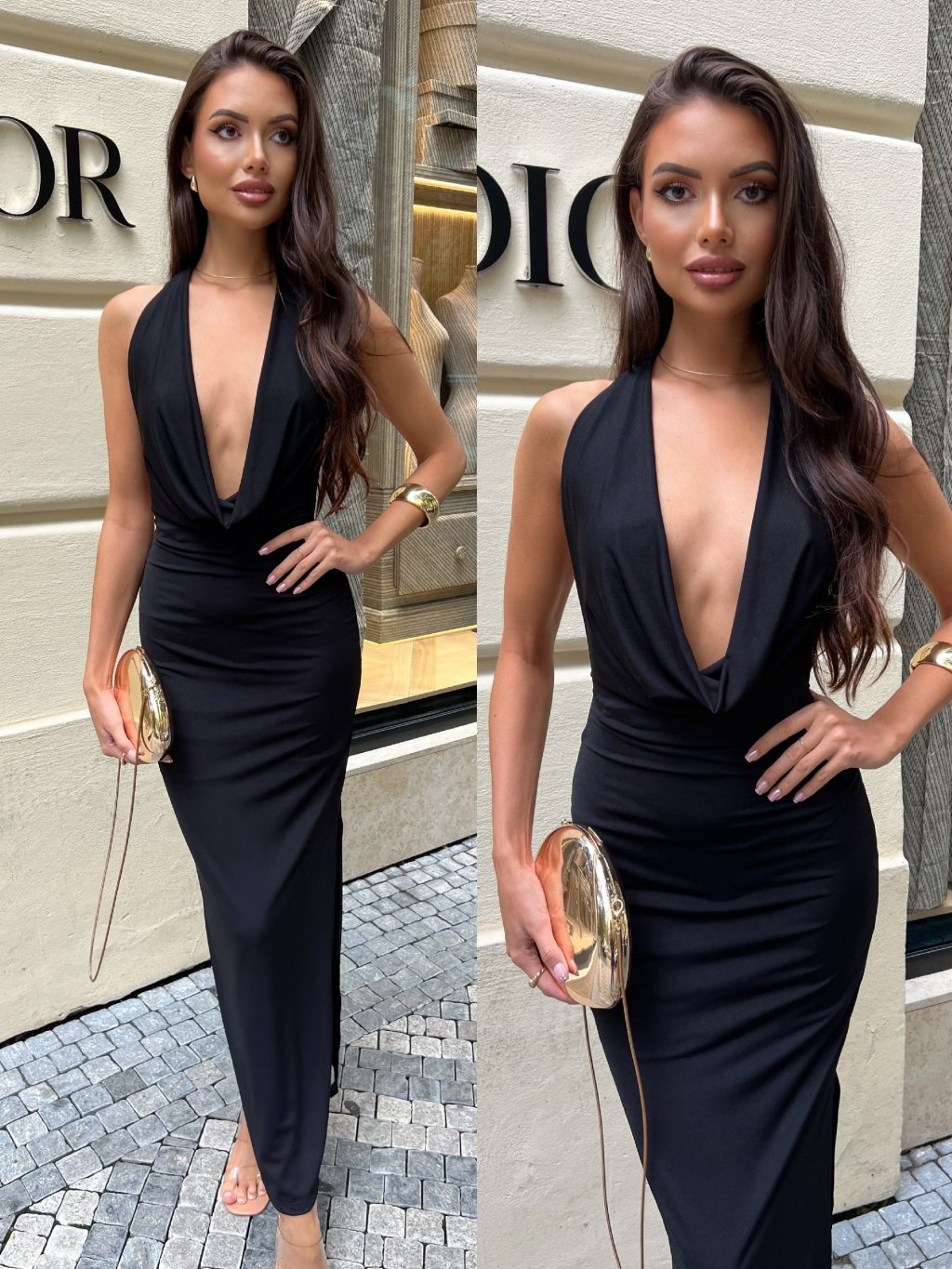 Vyrobeno v Itálii. Sexy šaty s hlubokým výstřihem a bočním rozparkem. Vytváří krásnou a sexy postavu. Elastická struktura. Velmi pohodlné na nošení. Kvalitní zpracování a detaily. Modelka měří 170 cm a běžně nosí velikost S.