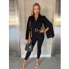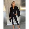 Vyrobeno v Itálii. Elegantní overal s páskem ve stříbrném provedení. Ramenní vycpávky, které dodávají overalu elegantní vzhled. Otevřené rukávy. Vytvoří krásnou figuru a obepne pas a nohy. Kvalitní zpracování overalu a pásku. Materiál je pružný. Modelka běžně nosí velikost S a měří 170 cm.