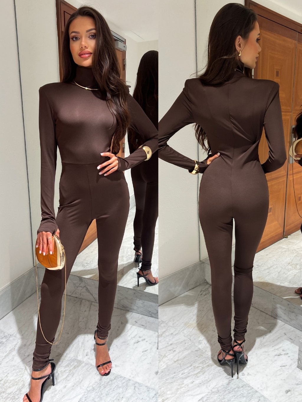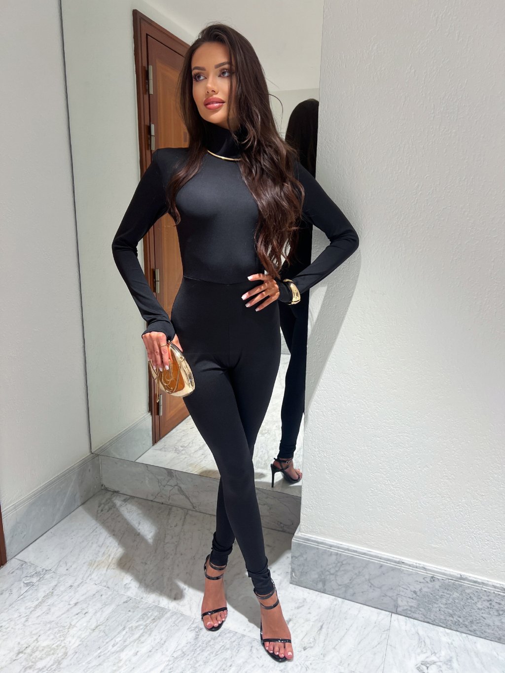 Vyrobeno v Itálii. Luxusní overal s vypasovanými rameny. Zapínání na zadní straně na jemný zip. Overal lze nosit i na přední straně se zipem - je oboustranný. Elastická legínová struktura, která neprosvítá. Velmi příjemný a pohodlný na nošení. Overal hezky stáhne v oblasti pase a vytvoří křivky. Zakončení rukávu lze nosit přes palec nebo klasicky. Modelka běžně nosí velikost S a měří 170 cm.