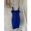 Bandážové šaty doplněné peřím v oblasti dekoltu, ve kterých zazáříte na každém místě. Propracované detaily. Materiál je stahující a obepne křivky. Vybírejte svou běžnou velikost. Délka šatů je měřena bez natažení, materiál se natáhne o cca 5 cm u každé velikosti. Zapínání na pevný a kvalitní zip na zadní straně stejné barvy jako šaty. Praní povoleno pouze ruční. Peří po namočení získá zpět svůj původní vzhled a tvar. Modelka běžně nosí velikost S a měří 170 cm.