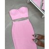 PREMIUM kolekce 2024. Bandážový komplet v jemně růžovém odstínu. Top má vystuženou oblast prsou. Zadní strana topu má zapínání na zlatý zip. Sukně má zapínání na zip na zadní straně. Materiál je elastický a přizpůsobí se postavě. Vybírejte svou běžnou velikost. Modelka měří 170 cm a na fotce obléká velikost S.