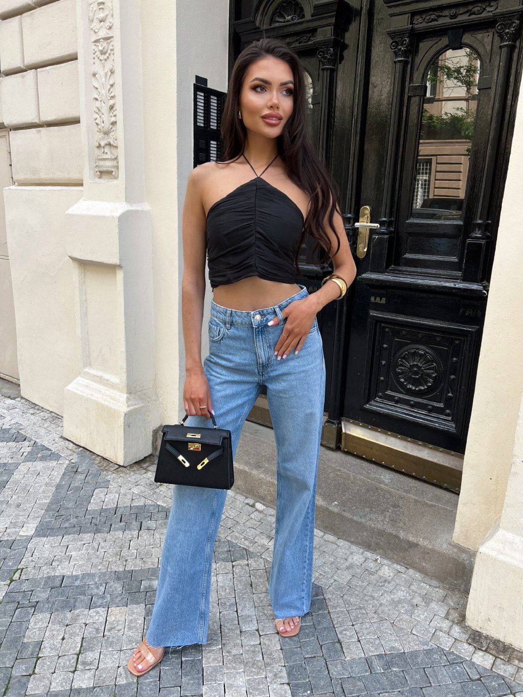 Luxusní top s jemným leskem a řasením. S tímto topem vytvoříte mnoho kombinací - s džíny, bílé kalhoty, pod sako či na pláž. Zadní strana elastická s řasením. Vhodný i na větší poprsí. Modelka běžně nosí velikost S a měří 170 cm, obléká velikost S.