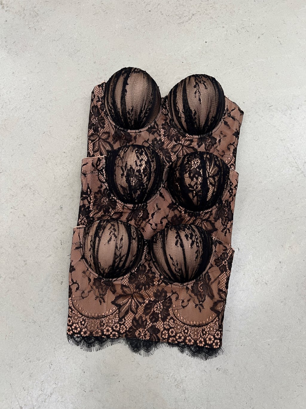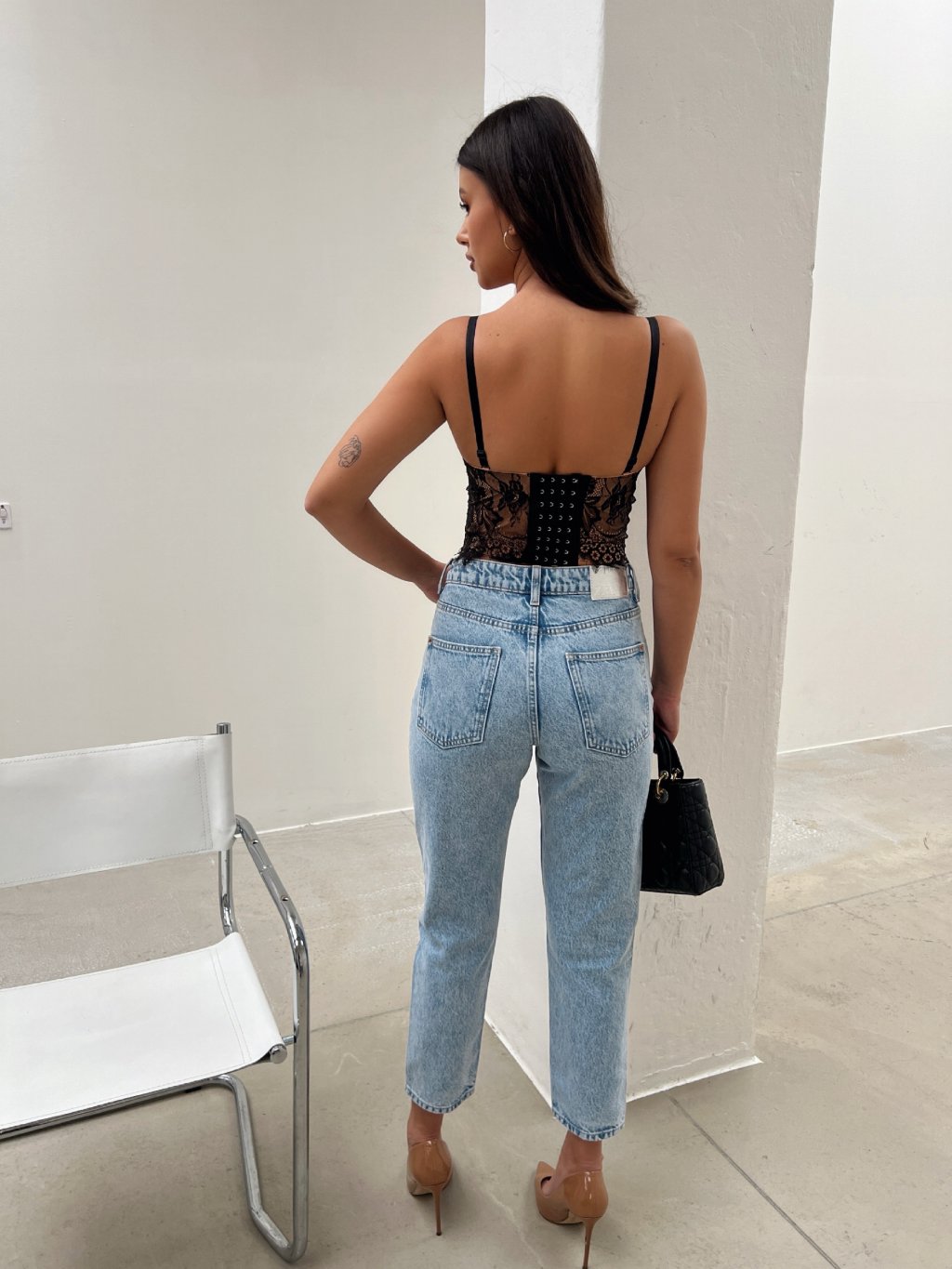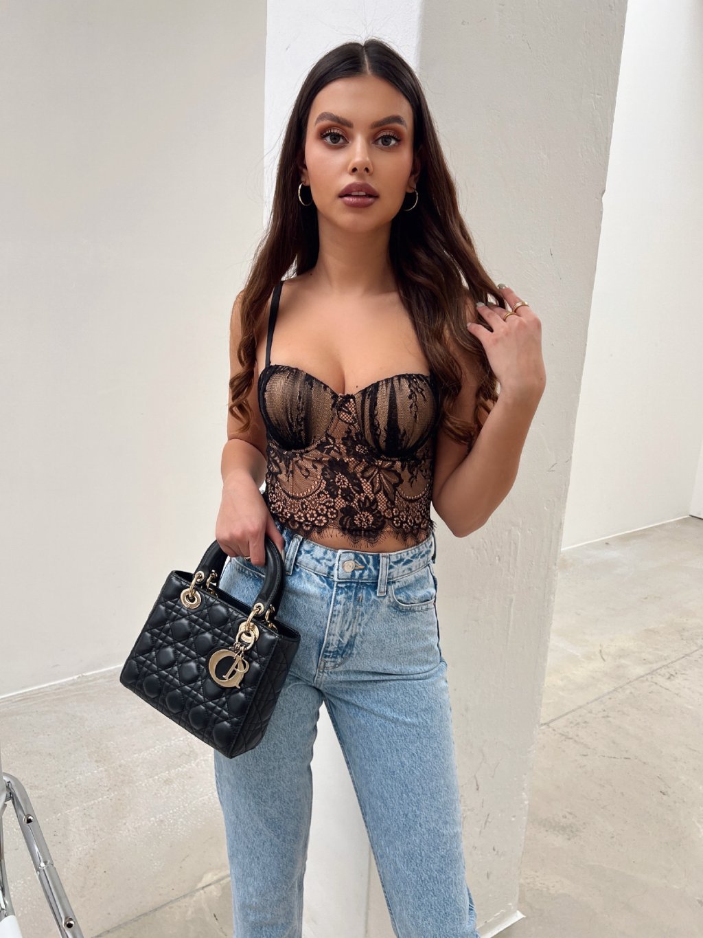 Vyrobeno v Itálii. Korzetový top se zapínáním na polohovatelné velikosti na zadní straně. Stříbrné detaily. Ramínka jsou nastavitelná dle velikosti a odepínatelná. Modelka měří 170 cm a běžně nosí velikost S.