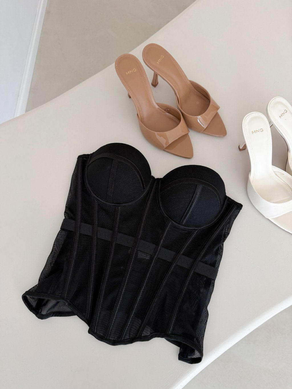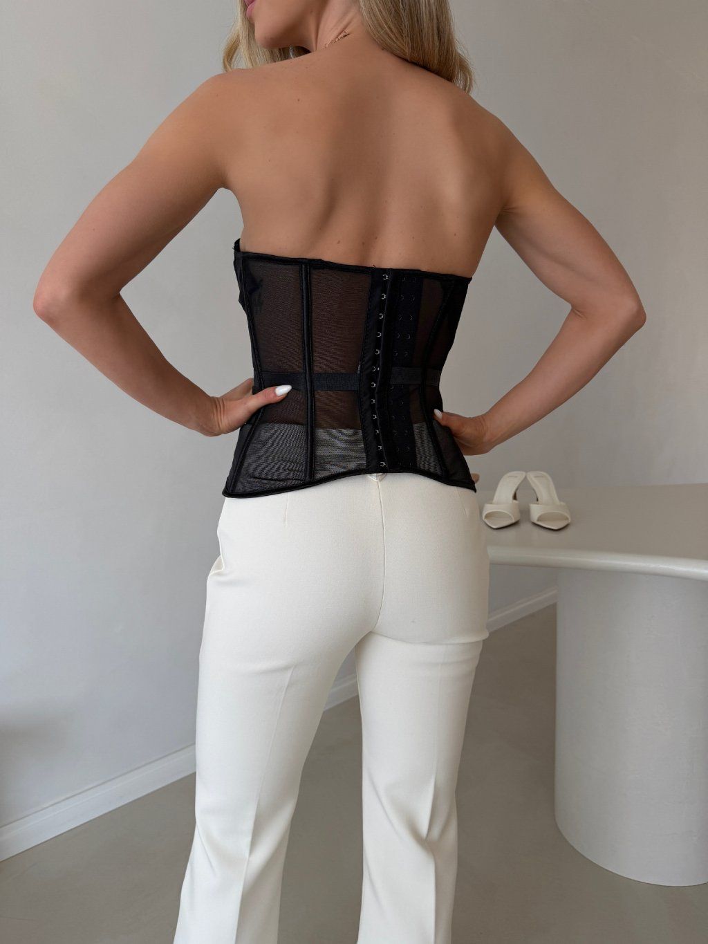 Vyrobeno v Itálii. Korzetový top s kosticemi v krásných základních odstínech. Vytváří stahující pas díky detailu v pase. Košíček je již vystužený. Nastavitelná ramínka dle velikosti, která lze i odepnout jako ramínka od podprsenky. Zadní strana zapínání na čtyři polohovatelné velikosti. Korzet doporučujeme na velikost A, B, C, D. Tento typ korzetu je vhodný i na větší poprsí ve velikosti, košíček je dost hluboký.