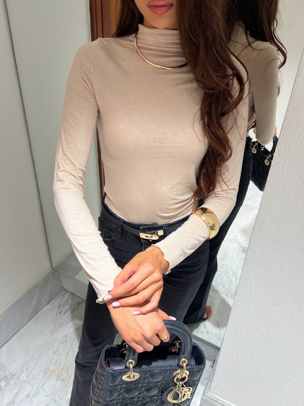 Vyrobeno v Itálii. Basic jednoduchý rolák z bavlny a lehké struktury. Hladký a sametový na dotek. Jemný stojáček ke krku. Vlnkovité zakončení rukávu a délky. Must have do šatníku na podzim a zimu. Klasická délka roláku s dostatečně dlouhým rukávem. Modelka běžně obléká velikost S a měří 170 cm.