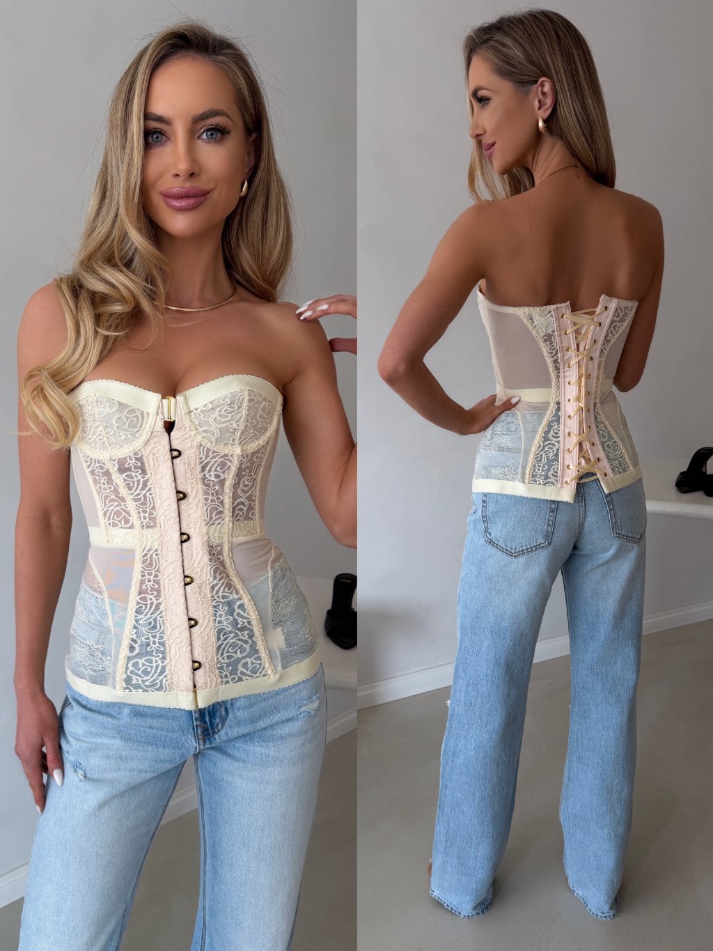 Populární korzet s všitou krajkou, který obepne pevně pas a vytvoří krásné křivky. Premium provedení. Korzet sedí opravdu krásně. Kostice na přední a boční straně zajišťují krásný a pevný vzhled. Košíček nadzvedne poprsí nahoru. Košíček není vystužený, má vnitřní podšívku - neprosvítá. Zapínání na přední straně na pevné zlaté cvoky. Zadní strana lze nastavit dle pohodlnosti pomocí hedvábné šňůrky. Korzet doporučujeme na velikost A, B, C, D.