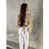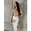 Vyrobeno v Itálii. Stylový crop top v bílém odstínu s variabilním zavazováním jak na přední straně, tak i na zadní, viz. foto modelky. Pevnější kvalitní struktura. Vhodný k plavkám na pláž i běžné nošení. Lze nosit i s podprsenkou. Vhodné na velikost XS, S, M i větší poprsí košíčku C. Modelka běžně nosí velikost S a měří 170 cm.